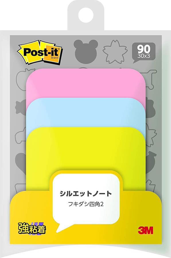 ●仕様:工夫次第で色々使える、型抜きされたシンプルでかわいいデザインのポスト・イット(R)ノートです。しっかり貼れる強粘着タイプ。◆本体サイズ:57×63mmよりカットアウト◆仕様:フキダシ四角2◆強粘着タイプ◆入数:30枚×3色◆色:ピンク、ネプチューンブルー、ウルトライエロー