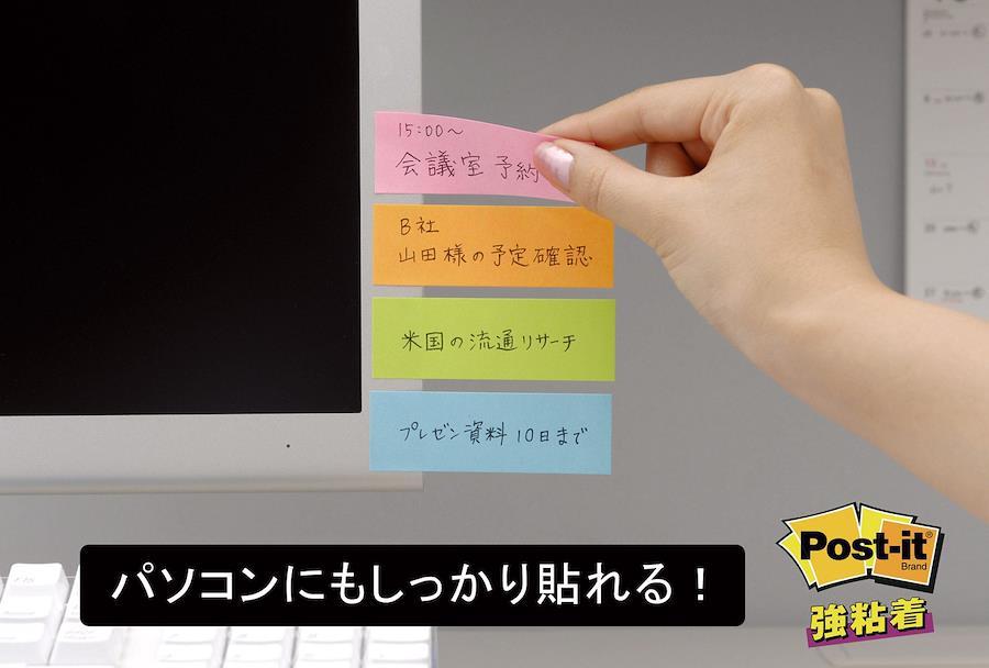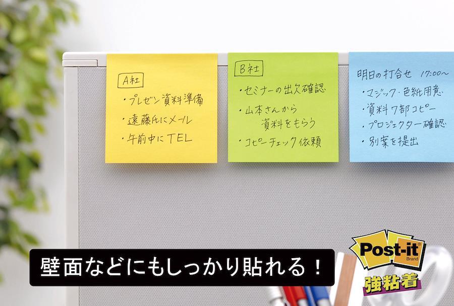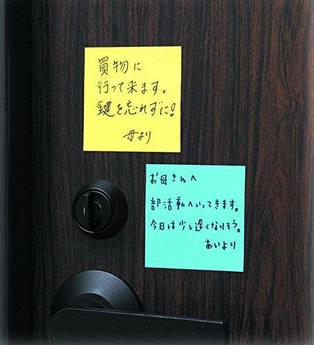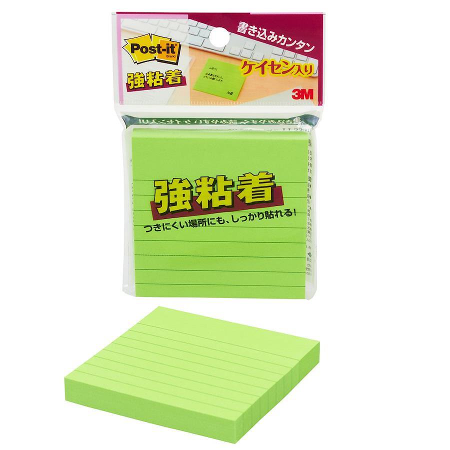 ●ふせんサイズ:75x75mm。 正方形の定番サイズのポストイット付箋です。 ちょっと詳しい伝言、情報整理などに便利なサイズです。●約2倍*の強粘着タイプで、クリアファイルやパソコン、電話などの樹脂面や、キャビネットや家具などのスチール面、扉、壁などの垂直面、ダンボールなど、つきにくかった場所にもしっかり貼れるので、大切な伝言やメモに最適です。しっかり貼れてきれいにはがれるのが特長の製品です。(*当社通常粘着比)●7mm間隔で罫線(ライン)をプリントしています。項目整理がしやすいので、やることメモを見やすく書くことができます。長文のメモや伝言などがきれい書けて便利です。●90枚x1パッド。●色:ライム0