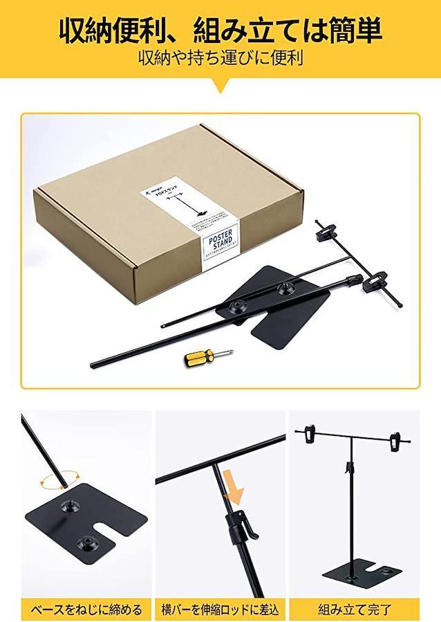 「幅広い用途」POPスタンドはイベントや即売会、展示会、即売会、スーパーマーケットや商店、フリーマーケット等で案内やPOPを掲示するのに便利なスタンド。
