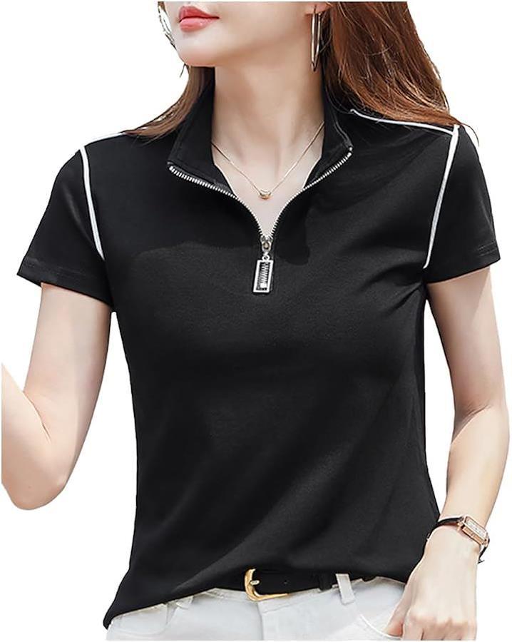 「デザイン」スタイリッシュな立ち襟が目を引く半袖ポロシャツ。