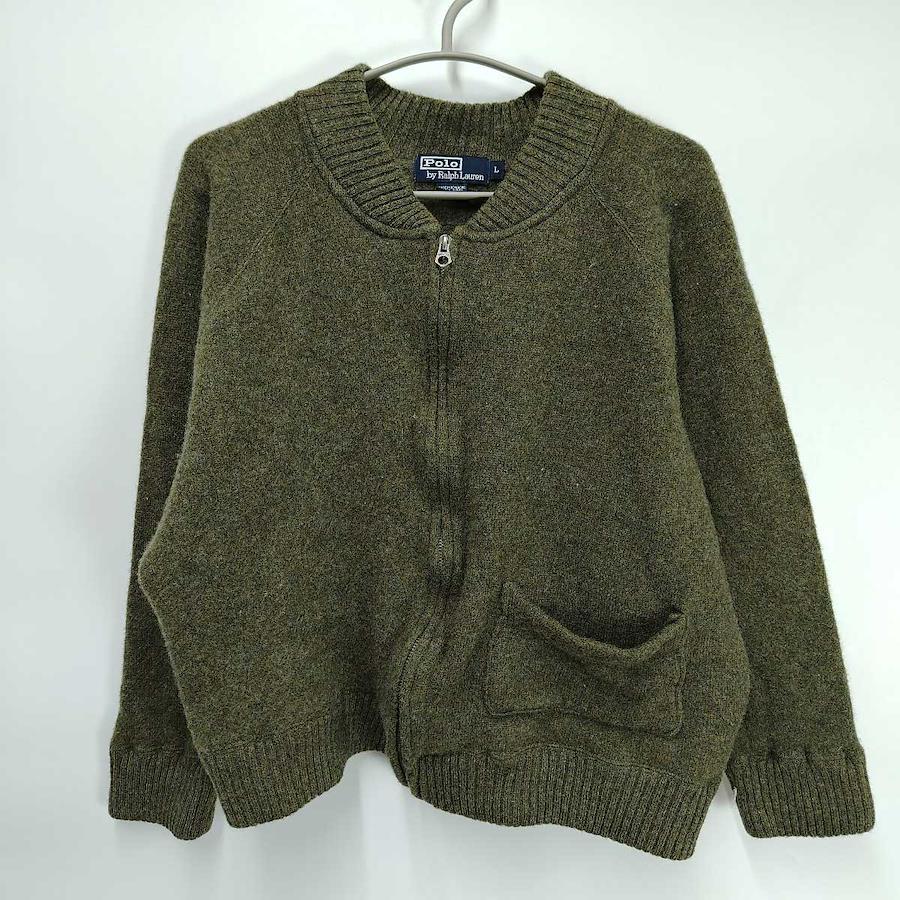 ポロ ラルフローレン ジップアップ ニット ジャケット L カーキ メンズ Polo by Ralph Lauren