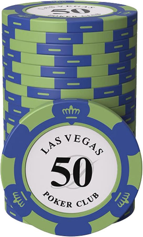 「仕様」 内容:ポーカーチップ(面値50x20枚) 素材:クレイ+メタルインサート構造 重量:約14g/枚 サイズ:直径約40mm パッケージ:ケースなし(簡易包装)