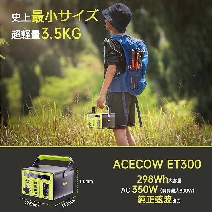 Acecow ET300は史上最小・最軽量のポータブル電源であり、わずか3.5kgの軽さです。
