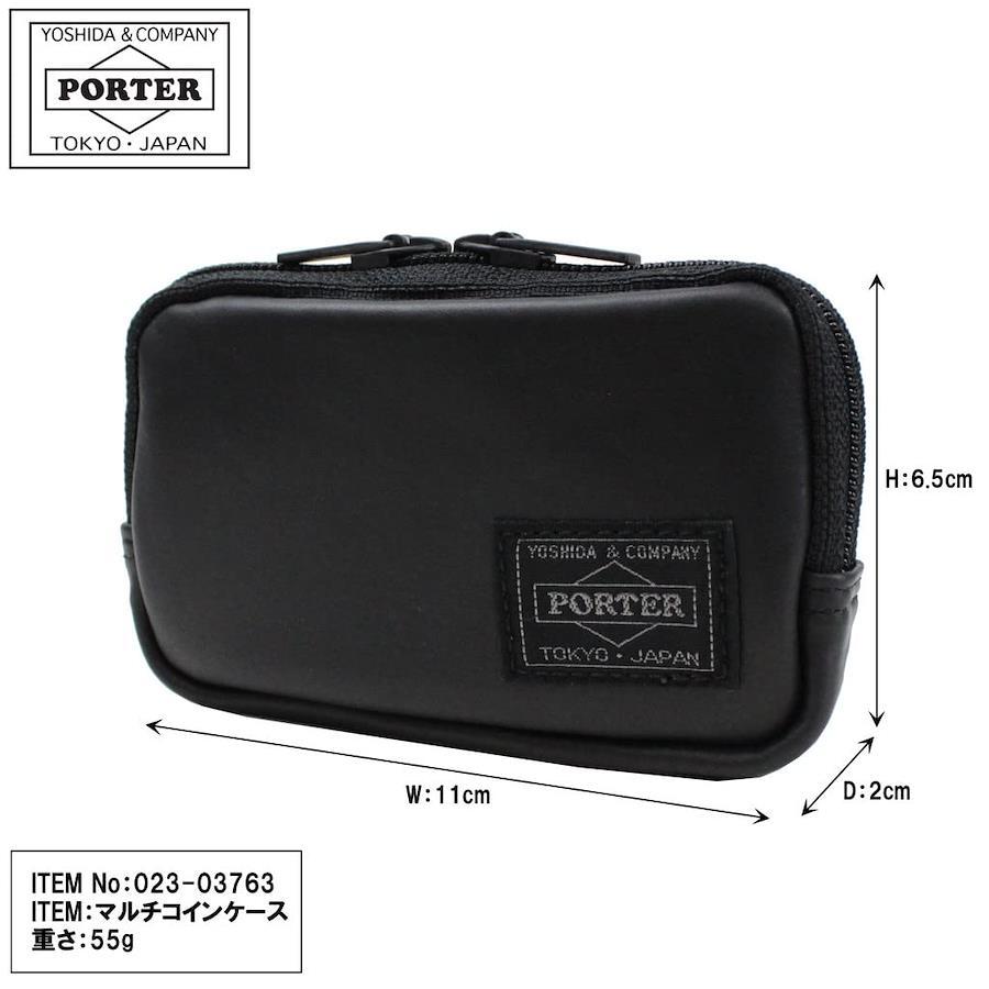 軽く手触りの良いレザーを贅沢に使ったカジュアルテイストな【PORTER ALOOF/ポーター アルーフ】シリーズ。肌理(キメ)が細かくふっくらとしたレザーに、ナイロン素材を組み合わせることで視覚的な引き締め効果が生まれ、独特の魅力を醸し出しています。こちらは、ポケットが充実したマルチコインケース。内側に免許証サイズが入るクリアポケットや、SDカード等小物の収納にピッタリな小さめポケットを装備。 優れた収納で、自分のスタイルに合わせた使い方ができるのが魅力的です。ファスナーは引き手を倒してロックすることができ、移動時にカチャカチャ揺れることもなく、バッグの中で小銭がこぼれたりすることもありません。ベーシックなデザインで、上品な印象をプラス。年齢を問わず長く使用して頂けるアイテムです。 商品の概要: 【メイン開閉】ダブルファスナー内側/フリーポケット×5(うち3つクリアタイプ)※革の素材・風合いを活かす為、必要以上の加工を施しておりません。その為、元々の傷・シワ・シボが出やすい商品となります。1つ1つ違った革の風合いをお楽しみ下さい。 【メーカー品番】023-03763-10 【サイズ】W110/H65/D20 【素材】表:カーフ(インド輸入革・クロームなめし)裏:コットンツイル 【生産国】日本 【重量】約 50 グラム