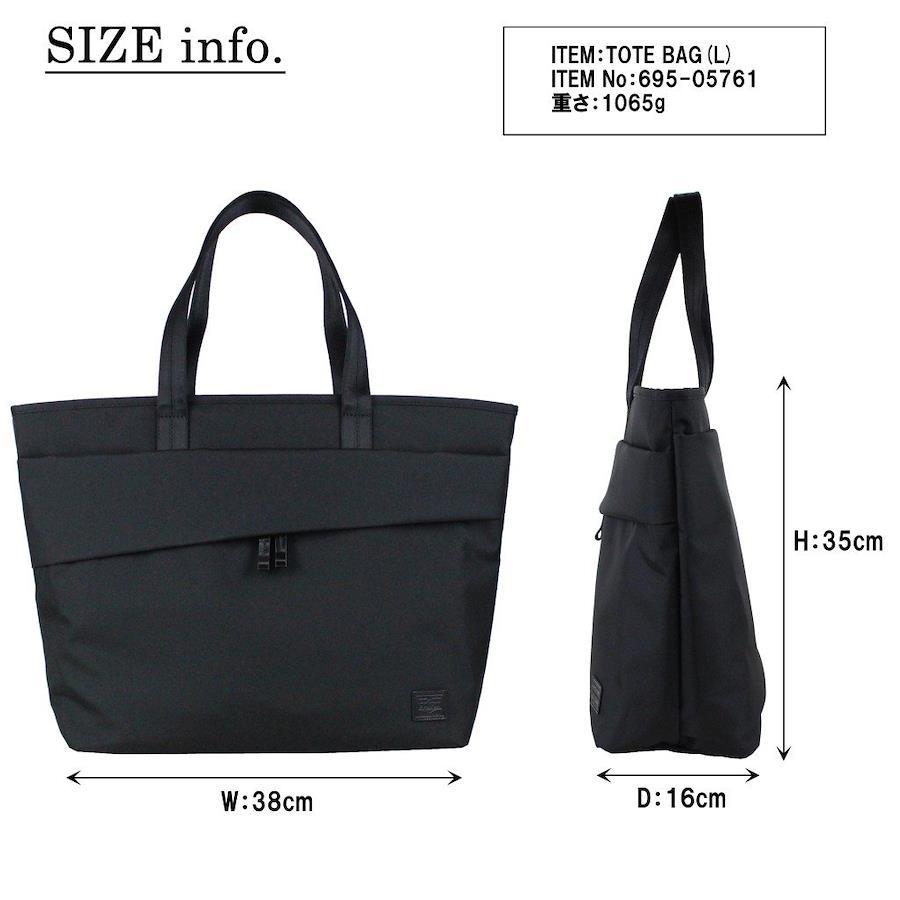 クロージャータイプ ファスナー 【表地】ナイロンポリエステルツイル(裏面:PVC加工) 【裏地】ナイロンオックス(裏面:アクリルコーティング)【サイズ】約 W380×H350×D160(mm) 【収納口】約 500(mm) 【ハンドル】高さ 約 190(mm) ※サイズは当店計測サイズとなります。商品により、若干の個体差が生じます。【重量】約 1065グラム 【生産国】日本【外側】ジップポケット(L)×1 [ポケット(S)×2 内蔵]【内側】PC収納×1(15インチ対応)、ポケット(S)×2、ペンホルダー×2、防水ホルダー×2