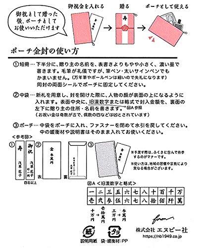 :お祝いの後はコスメやちょっとした小物を入れるポーチとしてご使用いただけるフラットポーチ型の金封です。 光沢のあるサテン生地と繊細なチュールレースを重ねた本体にパールビーズとサテンリボンの引き手がフェミニンな印象を演出しています。 贈る金額の目安は、~5万円です。 やさしく可愛らしいピンクのポーチで、結婚式の贈り物としておすすめです。