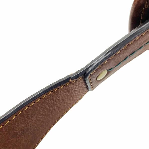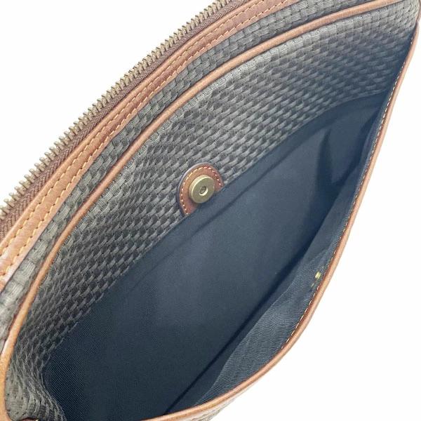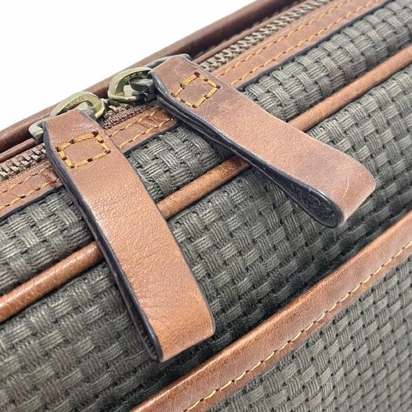 外側:型崩れがあり、レザー部分は所々に傷・擦れ・擦り減り・色落ち・汚れ・シミ汚れ・シワ等が見られます。紐ストラップには擦り減り・色褪せ・かなり金具跡が付き、特に、レザー付け根部分には縁コーディングの剥がれ・亀裂等ダメージが生じています。キャンバス地は擦り減り・多少汚れ等、金具には擦り傷・クスミ・メッキ剥がれ等がございます。
