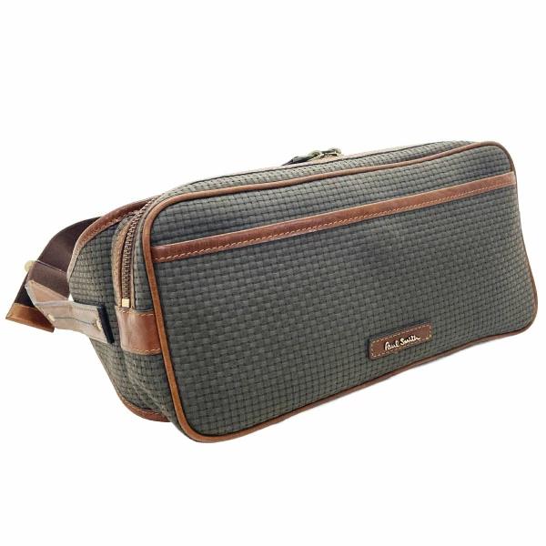 ポールスミス ウエストバッグ ロゴ ボディバッグ キャンバス レザー 革 グレー ブラウン 茶色 Paul Smith 編み込み メッシュ ヒップバッグ ウエストポーチ バッグ バック カバン 鞄 メンズ 紳士 男性【中古】