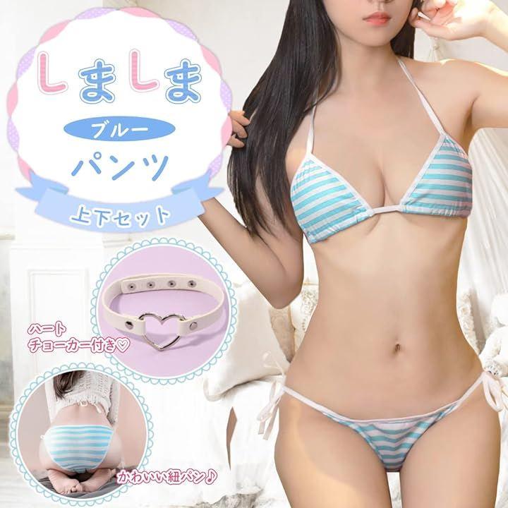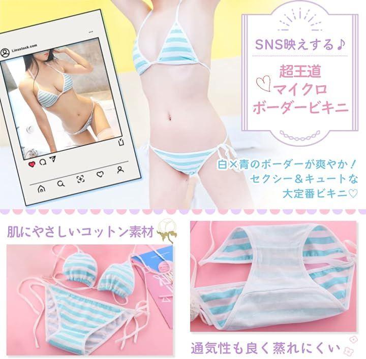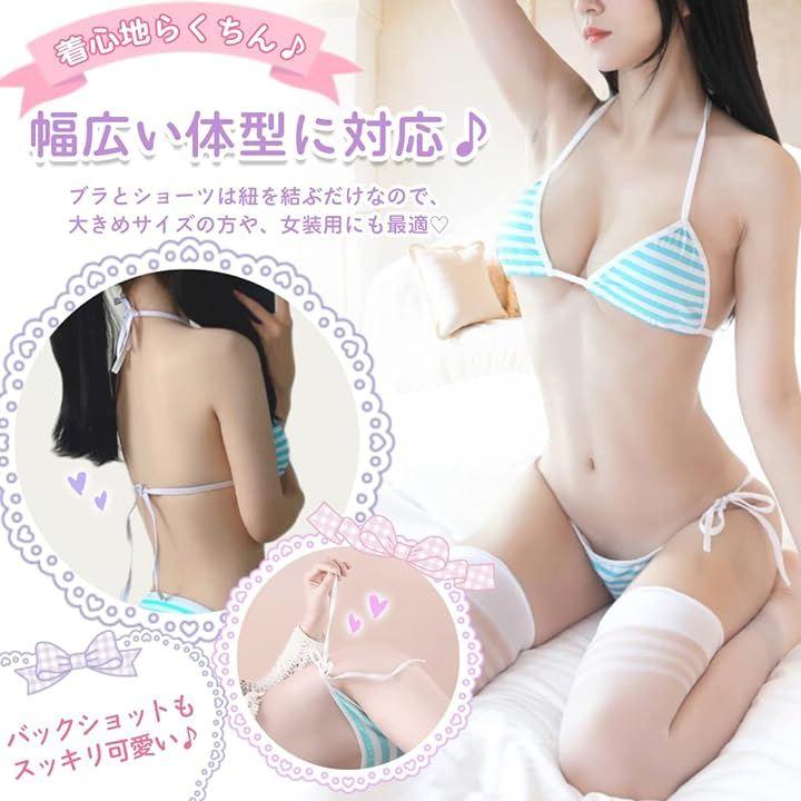 可愛いコスプレ 下着 マイクロ ビキニ 上下セットです*コスプレイヤーに大人気のしましま模様のニーハイソックス、女子高生コスプレに人気のルーズソックス、体操服、セーラー服コスプレとの相性も可愛いくきまります*