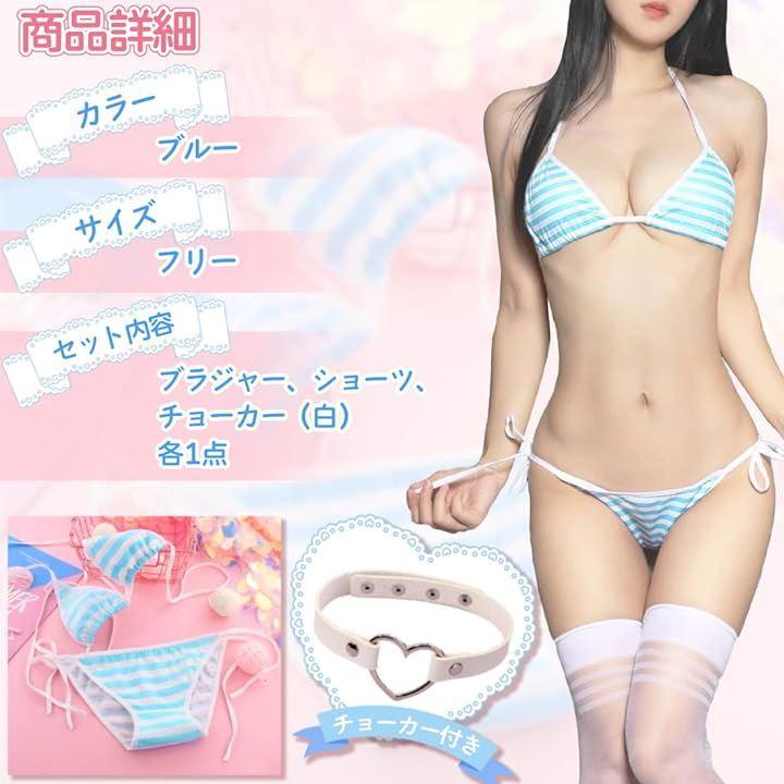 vサイズ:フリー / セット内容:ブラジャー・パンツ・チョーカー 3点/ カラー:ブルー