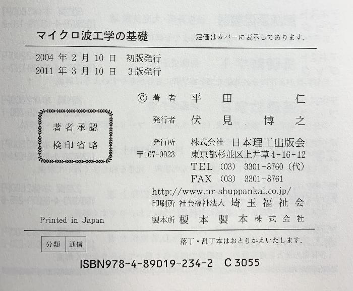 マイクロ波工学の基礎 日本理工出版会 平田 仁