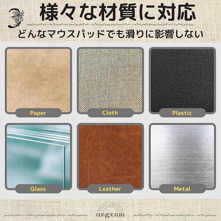「様々な材質に対応」 どんな材質のマウスパッドでも滑りに影響しません