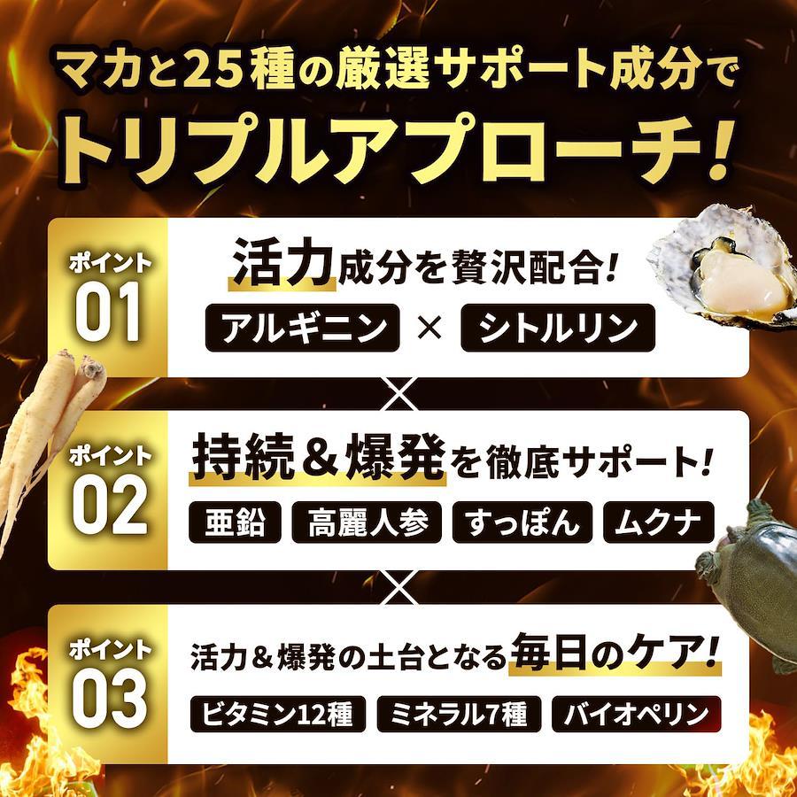■サイズ:??16.5x11x2cm;20g ??【マカ業界No.1クラス200,000mg】マカを業界トップクラスの200,000mg配合!圧倒的な配合を実感してください! ??【厳選サポート成分】亜鉛、アルギニン、シトルリン、高麗人参、すっぽんなど厳選されたサポート成分25種を配合! ??【亜鉛の栄養機能食品】栄養機能食品の基準を満たす量の亜鉛を配合!日々の活力をサポート! ??【国内GMP認定製造】安心して飲んで頂くために国内のGMP認定工場で製造! ■重要なお知らせ原材料・成分マカエキス末(マカエキス、デキストリン)(ペルー製造)、デキストリン、 L-シトルリン、ムクナ抽出物(ムクナ抽出物、デキストリン)、スッポン末、高麗人参末、パン酵母(ブドウ糖、マンガン、亜鉛、銅、モリブデン、ヨウ素、セレン、クロム含有)、黒胡椒抽出物/セルロース、グルコン酸亜鉛、ステアリン酸カルシウム、香料、微粒酸化ケイ素、L-アルギニン、ビタミンC、ビタミンE、ナイアシン、パントテン酸カルシウム、ビタミンB1、ビタミンB6、 ビタミンB2、ビタミンA、葉酸、ビタミンD、ビタミンB12
