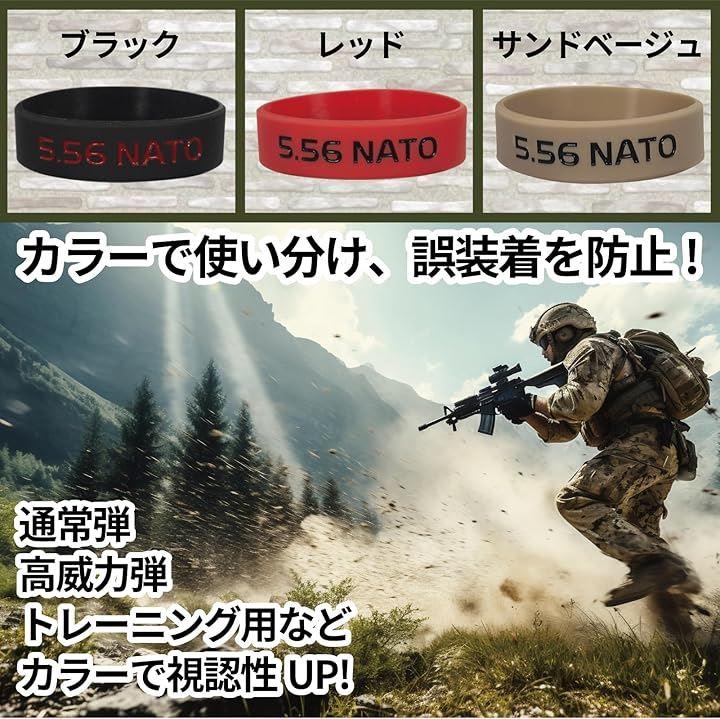 「カートリッジ表記入り」バンドには「5.56 NATO」や「7.62x35mm」のプリントなど、サバゲーのリアルさを求めるだけでなく見た目のカスタマイズ要素としても楽しめます。