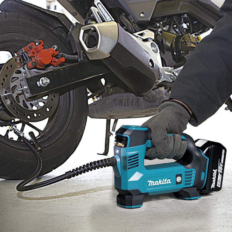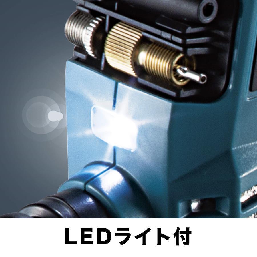 マキタ 充電式空気入れ18V 米英仏バルブ&ボール浮き輪バルブ付 バッテリ充電器別売 MP180DZパターン(種類): 本体のみ色 ネイビー, ブラックブランド マキタ(Makita)材質 プラスチック商品の重量 1.25 キログラム商品寸法 (長さx幅x高さ) 26.6 x 8 x 17.4 cm長時間使用が可能な18V仕様でラクラク空気入れ。吐出量が約20%アップした18V仕様(マキタ10.8V機比)で、作業スピード向上。各種タイヤ、ビーチボール等の空気入れに。空気圧を簡単設定。色々なバルブに対応するアダプタ付アダプタ(標準付属品):米式バルブ用(本機取付)・英式バルブ用(本機取付)・仏式バルブ用・ボール用・浮き輪用18V、スライド式Li-ionバッテリ仕様、バッテリ・充電器別売最高圧力:830kPa、吐出量:12.0L/min(200kPa時)、ホース長:650mm1充電あたりの作業量(目安/BL1860B使用時):自動車タイヤ(215/60R16)約11回/自転車タイヤ(26インチ)約200回/ビーチボール(直径30cm)約145回標準付属品: