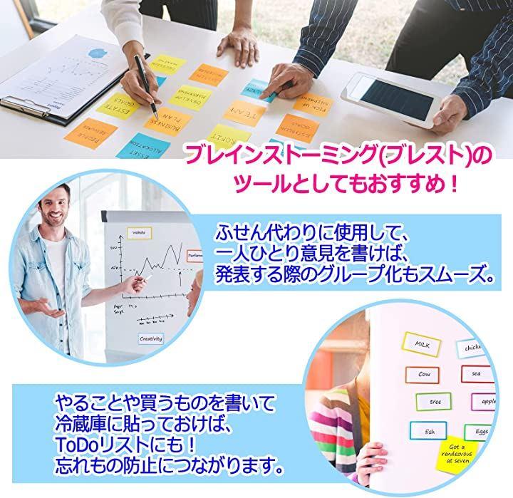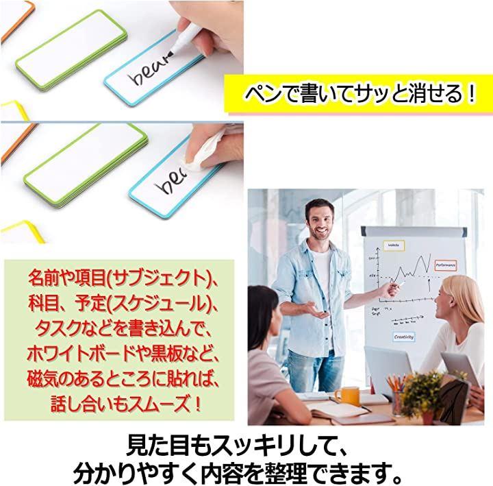 ペンで書いてサッと消せる。名前や項目(サブジェクト)、科目、予定(スケジュール)、タスクなどを書き込んで、ホワイトボードや黒板など磁気のあるところに貼れば、話し合いもスムーズ。見た目もスッキリして、分かりやすく内容を整理できます。