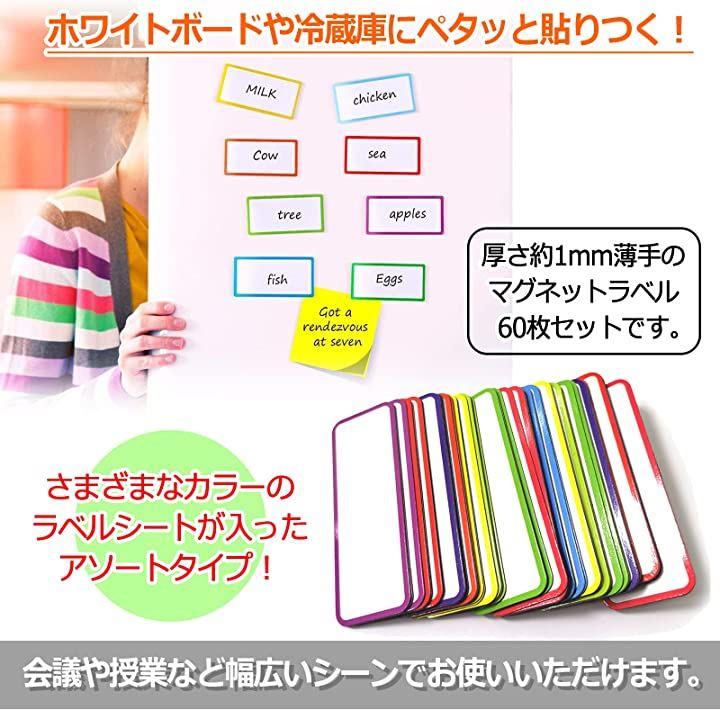 ホワイトボードや冷蔵庫にペタッと貼りつく。厚さ約1mm薄手のマグネットラベル60枚セットです。
