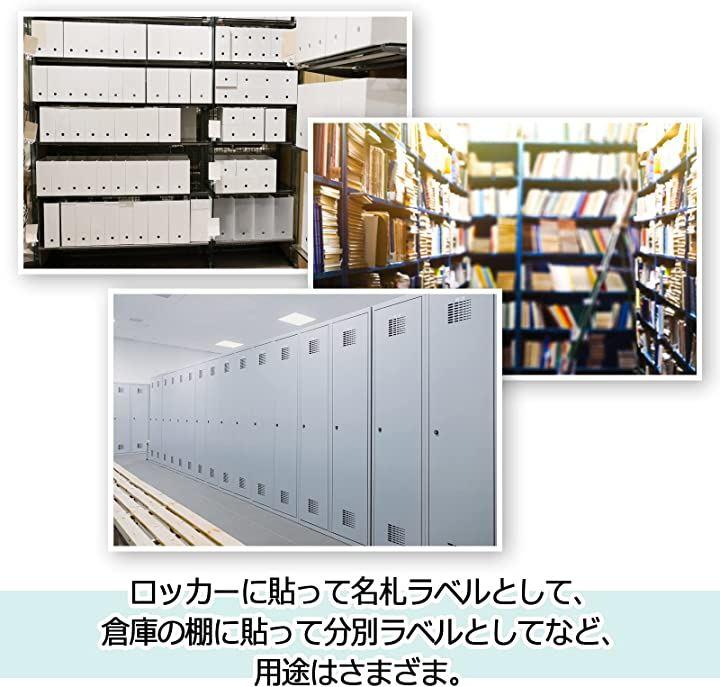 ロッカーに貼って名札ラベルとして、倉庫の棚に貼って分別ラベルとしてなど、用途はさまざま。