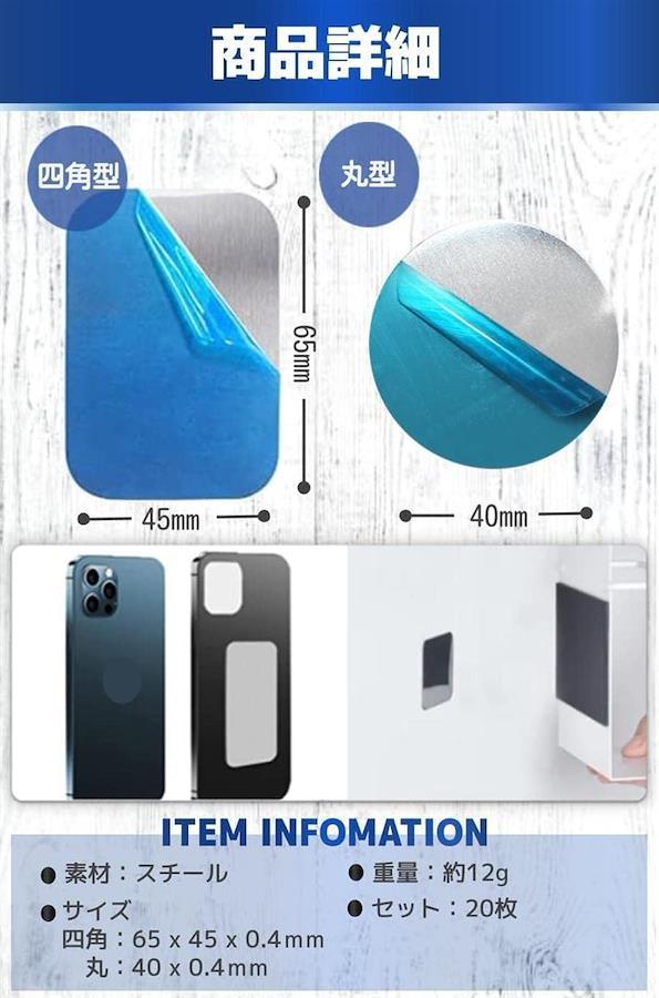 「商品詳細」 重量:約12g 素材:スチール セット:20枚 サイズ 四角:65 x 45 x 0.4mm 丸:40 x 0.4mm