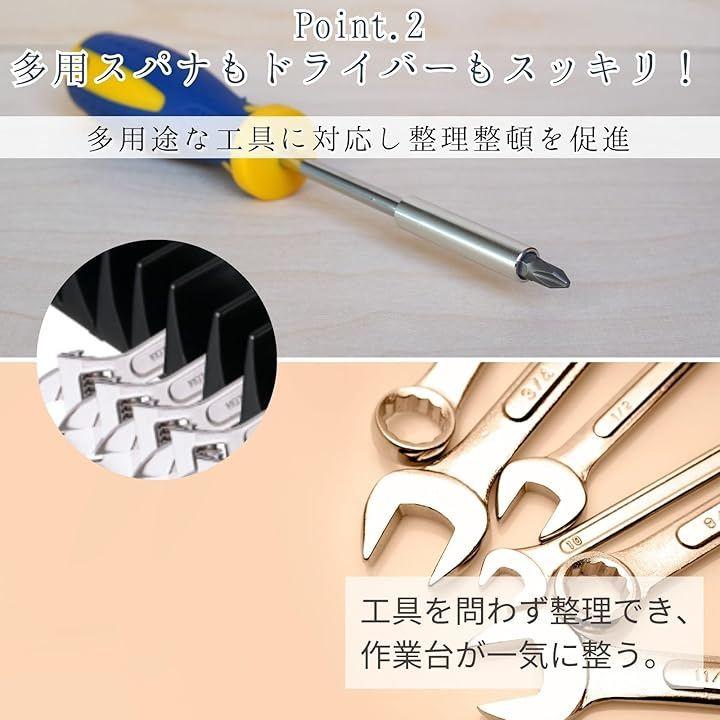 「多用途な工具に対応し整理整頓を促進」レンチ、スパナ、ドライバーはもちろん、プライヤーやハサミなどの金属製の手工具にも対応します。