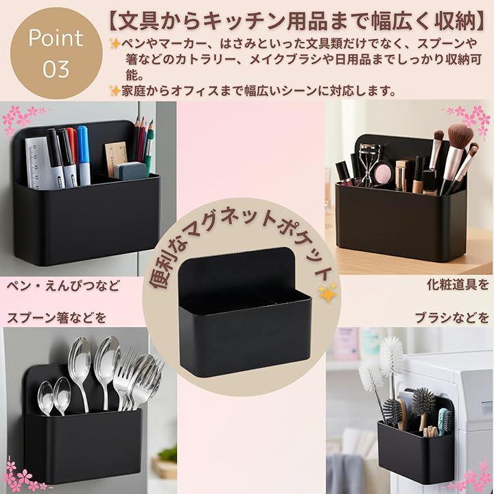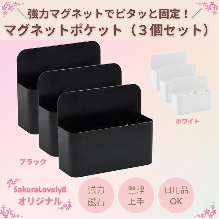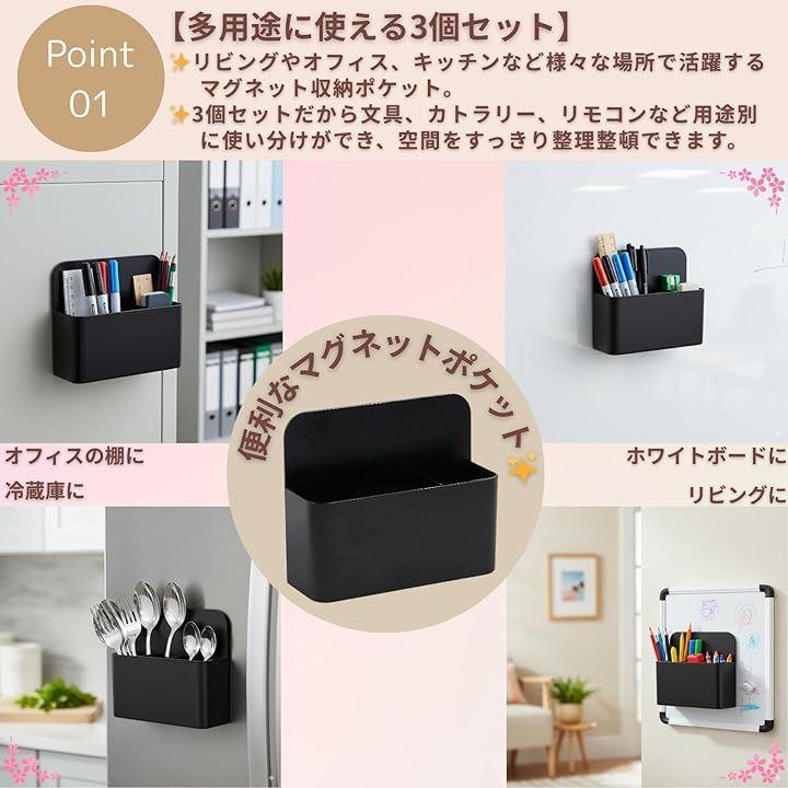 「多用途に使える3個セット」リビングやオフィス、キッチンなど様々な場所で活躍するマグネット収納ポケット。