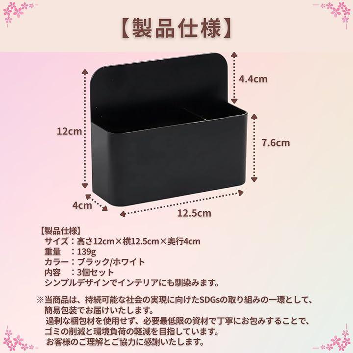 「製品仕様」サイズ:縦12cmx横12.5cmx厚さ4cm/個、重量:約139g/個、カラー:ブラック/ホワイト、内容:3個セット。