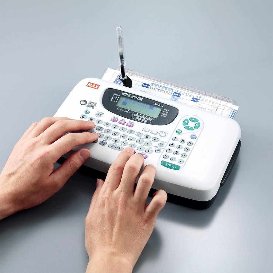 【書きたいところに、ピッタリ。あなたに代わって文字を書く。】●ボールペンで複写用紙だって、バッチリ書ける。複写用紙は4枚、マニフェスト用紙は7枚まで対応できます。●書きたいところにピッタリ! キレイに、ラクに、簡単に書くための機能を満載!●文字サイズが書類に合わせて変えられる。0.1mmずつ文字サイズが変えられます。●枠内にバランスよく書ける。範囲を設定すれば、文字幅は枠サイズに合わせ自動的に調整される。●書く前に、書き始め・書き終わりが確認できる。実際にペンが動いて、目で見て確認できます。●マス目に合わせて書けます。請求書などのマス目に合わせ、数字を入力できます。一度に最大8行までの文章が記入できます。行間・文字サイズ・文字配列の自動設定はもちろん、行ごとに細かな設定も可能。用途にあった書体が選べる。標準ストローク体の他にも、用途に合わせて書体が選べる。(ストローク体・太文字・ペン書体・楷書体・明朝体)作画スピードアップ! 高速CPU搭載で作画スピードが大きくアップ。高速モード時なら、従来機の2/3の時間で書けます。住所の郵便番号入力。7桁の郵便番号を入力すること