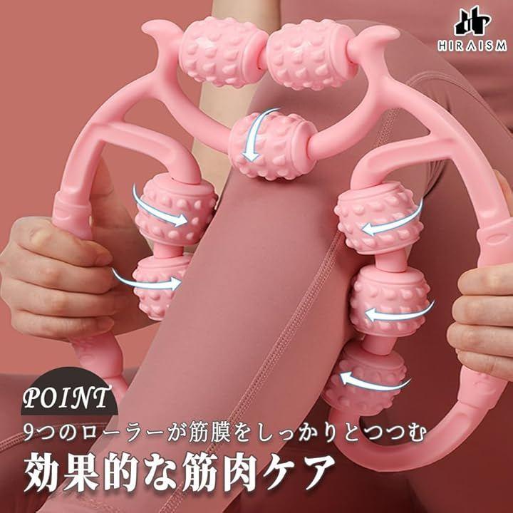 「効果的な筋肉ケア」9つのロ一ラ一が筋肉の筋膜をしっかりとつかみ、凹凸のある突起が筋膜や筋肉にしっかりアプローチ。