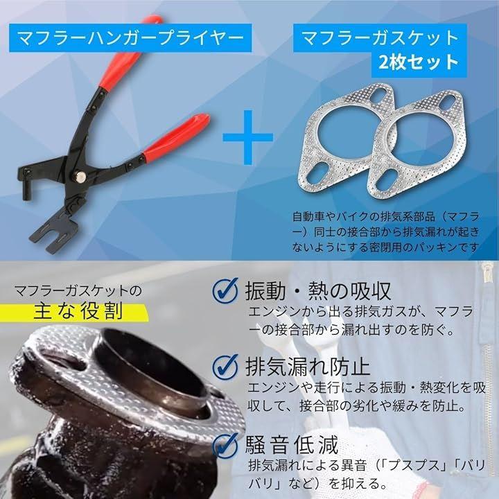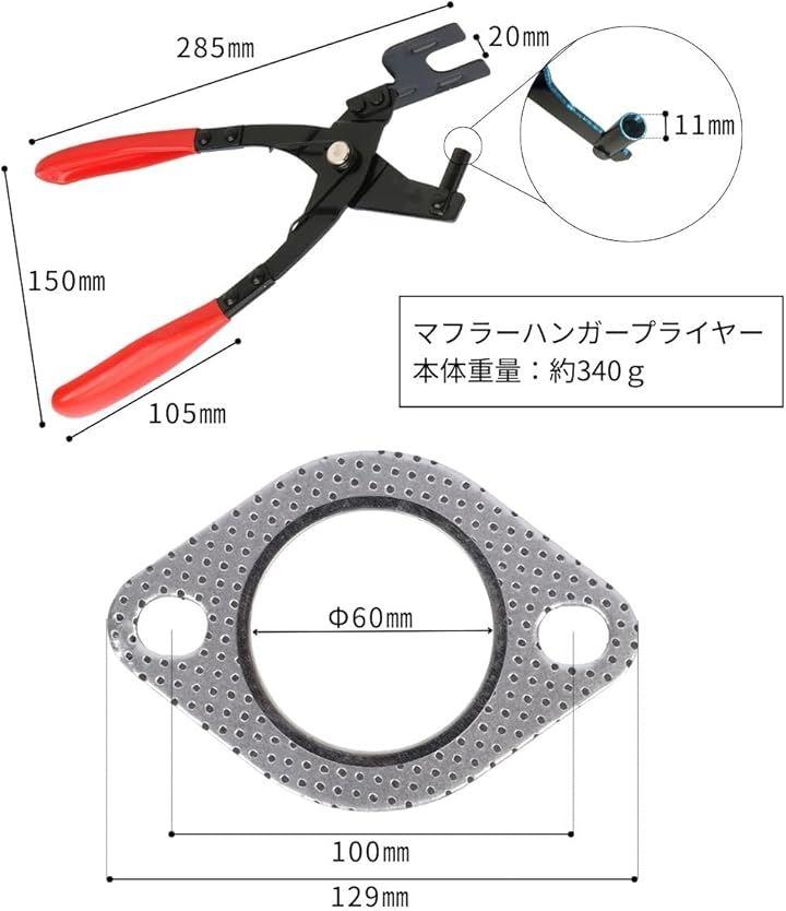 マフラーハンガープライヤー サイズ:285mmx150mmx20mm 重量:340g マフラーガスケット φ60