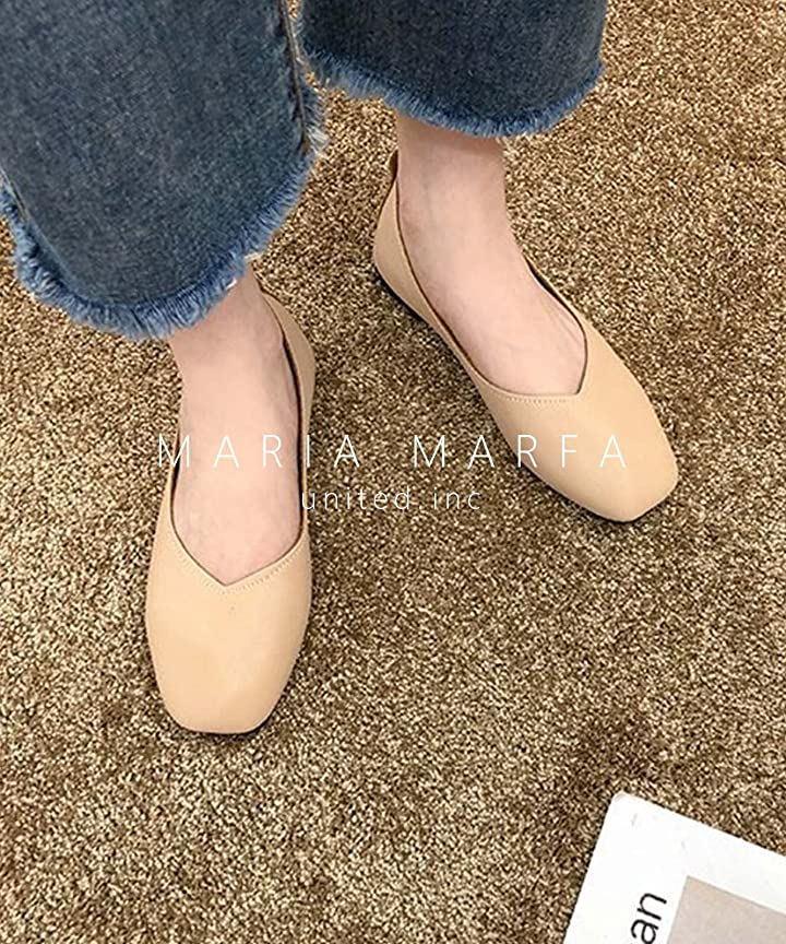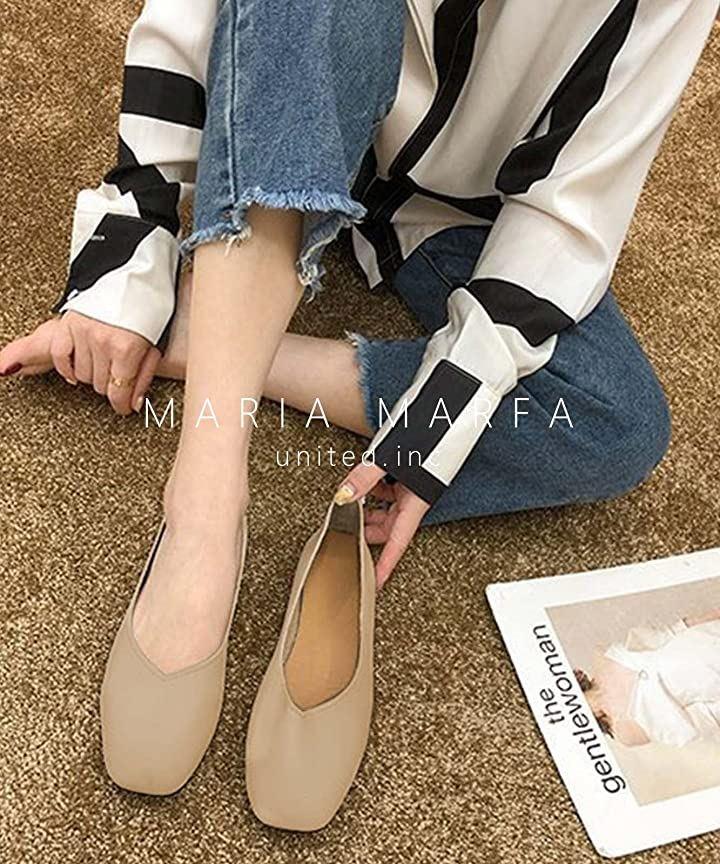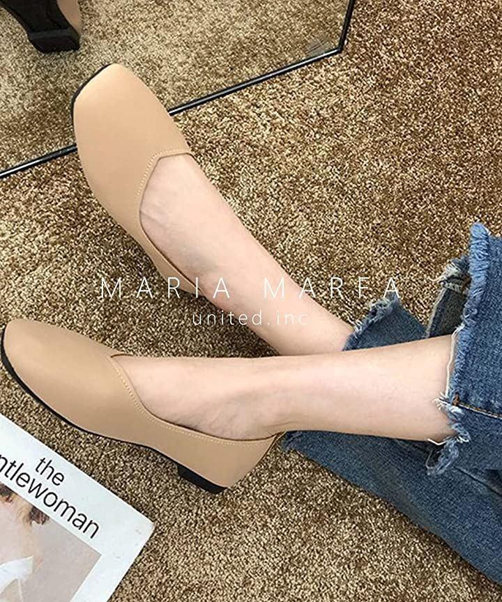 コロンと丸みのあるスクエアトゥが可愛らしいぺたんこパンプスの登場です。