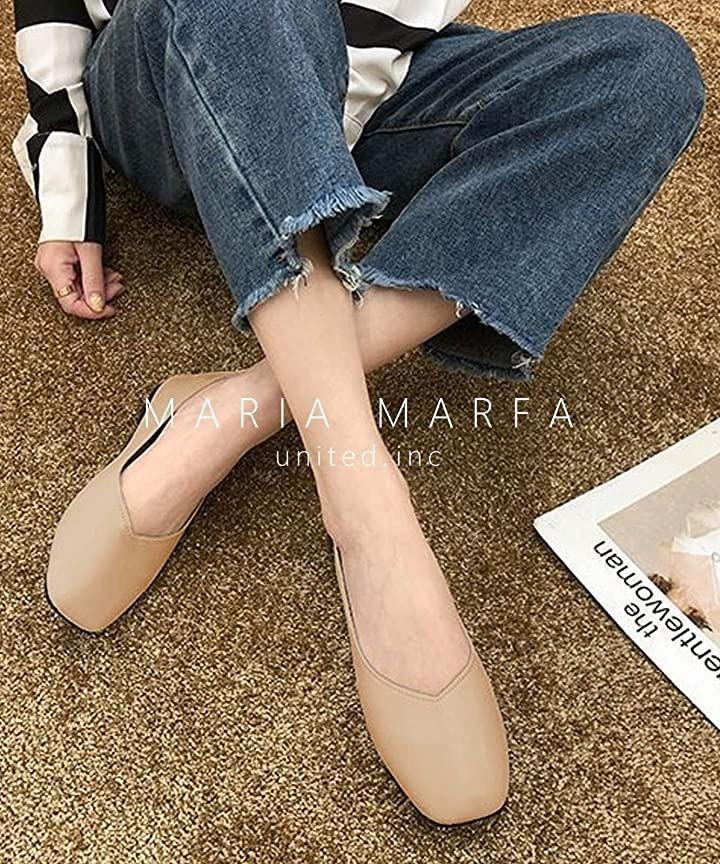 コロンと丸みのあるスクエアトゥが可愛らしいぺたんこパンプスの登場です。