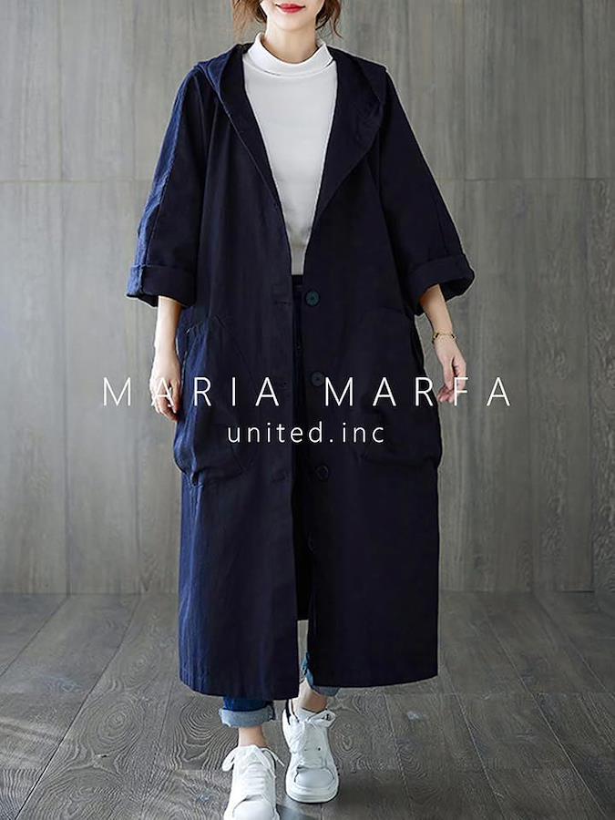 大きなフード付きで、長袖、7分丈長さなので、春風涼しい季節も肌寒さからしっかり守ってくれます。