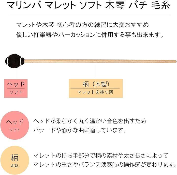 柔らかく高品質な毛糸巻きヘッドが、楽器本来の木の温かく深みのある響きを引き出します。