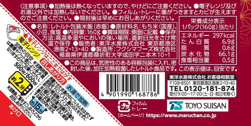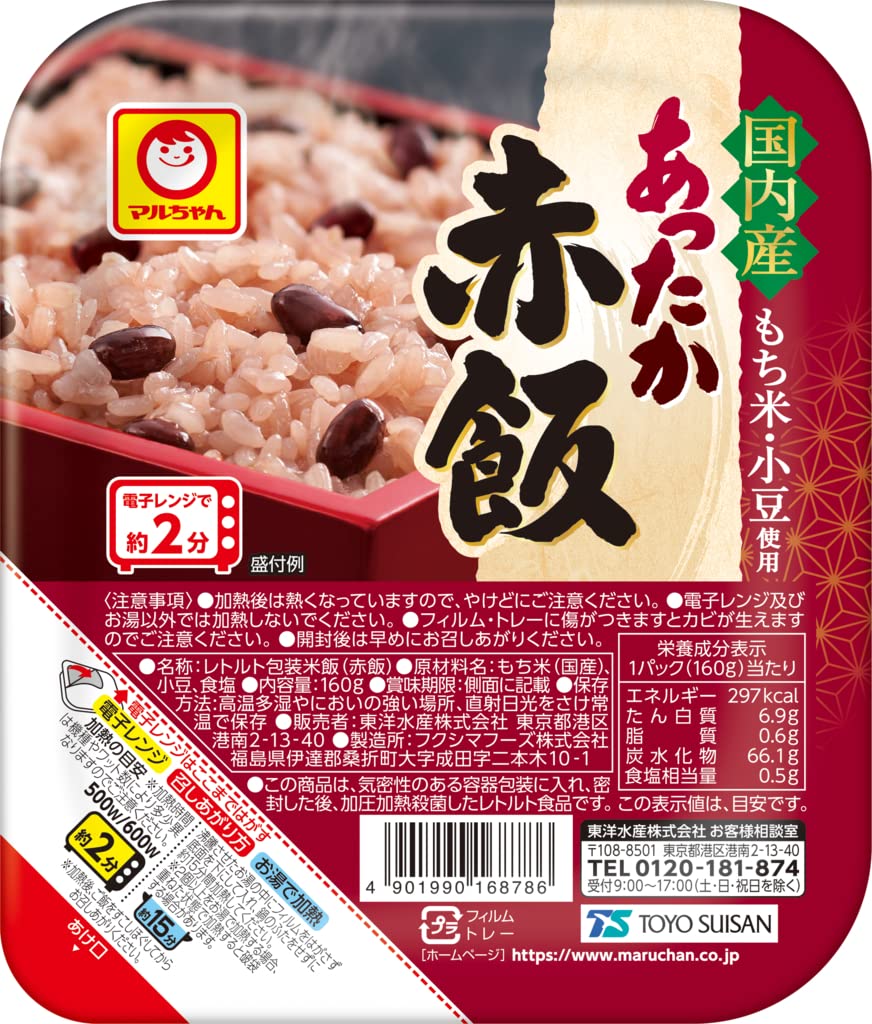 【厳選した国内産のもち米と小豆】美味しい赤飯をレンジアップで簡単・短時間で食べられるパックご飯。厳選した国内産のもち米と小豆を使用した赤飯です。【長期保存や非常食にもおすすめ】つぶ立ちが感じられるしっかりとしたもち米の食感。国内産のもち米100%使用したこだわりの赤飯。賞味期間が長く、常温保存可能なので災害時の備え、保存食としても便利です。【レンジでチンするだけの簡単調理】食べたい時に電子レンジで温めるだけでおいしいお赤飯の出来上がり。突然のお祝い事や、忙しい日や疲れた日でも、手間なく簡単に美味しい赤飯をお召し上がり頂けます。【キャンプやアウトドアにも】キャンプ、釣り、登山などアウトドアでもお湯で温めるだけでおいしくいただけます。一人暮らしや単身赴任のご家族に仕送りとしてもおすすめです。【商品詳細】内容量:160g×10個 / 商品サイズ(高さ×奥行×幅):112×269×162mm / 原材料:もち米(国産)、小豆、食塩 / 原産国:日本 / メーカー名:東洋水産株式会社【重要】メーカーによる商品リニューアルに伴いパッケージ(内容量も含む)変更が行われた場合、新パッケージでお届け致します事ご了承願います。