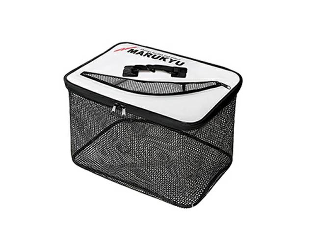天面のファスナーは曲線で配置されており、間口が広く魚が入れやすくなっています。上蓋のファスナーを開けると全開にできるため、大きな魚もラクラク取り出すことができます。メッシュの内側も綺麗に洗えてメンテナンスも容易です。