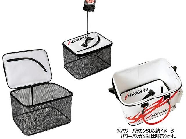 別売の「パワーバッカンSL」にぴったりと収まるサイズ。ハンドル部分にはDカンがあり、付属の8mロープが取り付けやすくなっています。