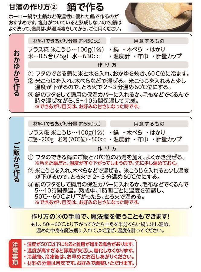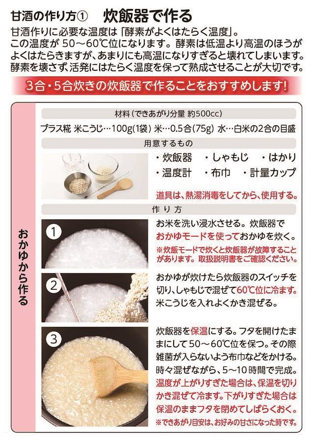 1回分の甘酒づくりに最適な100gタイプ。甘酒をはじめ、塩糀、しょうゆ糀、お味噌づくりなどを楽しめます。