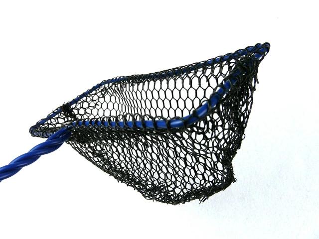 活きアジをやさしくすくえるラバーネットを使用した網です。