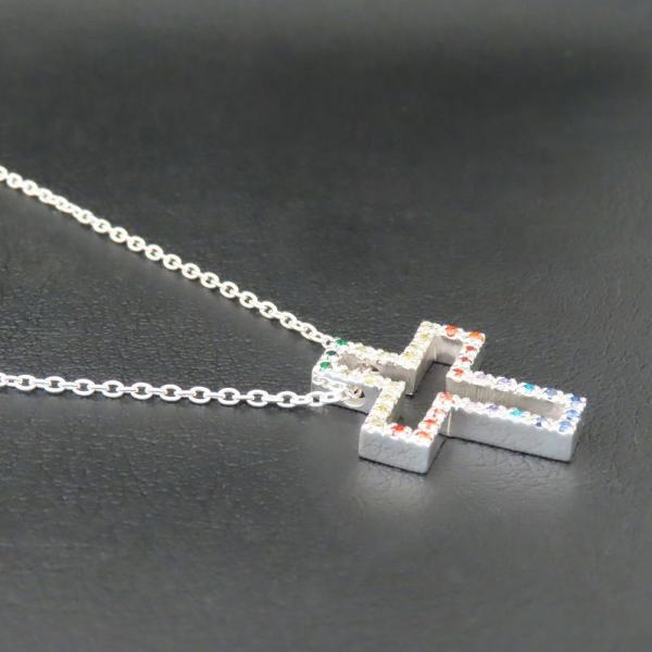 【モチーフ】 十字架、クロス ◆モチーフ意味 十字架といえばイエス・キリスト。 イエス・キリストは、人類を罪から救うため、十字架に磔刑に処されたといわれています。 そのため、十字架はキリスト教における救いのシンボルであり、特別な意味を持つ尊重されるべきしるしでもあるのです。 このような背景があるため、クロスは愛、救い、永遠、解放、生命力、復活など、多様な意味を持ちます。 また、クロスには守護の要素が強く、魔除けの効果があり、天からの加護や災いを跳ね返してくれる力が高まるともいわれています。 ◆商品名 マルチカラークロスネックレス(PDT-433) ◆素材 シルバー925 スターリングシルバー ◆ペンダント寸法 縦26mm×横21mm ◆ストーン マルチカラー キュービックジルコニア ◆チェーン長さ 35~60cmの中からお好みの長さをお選び下さい。 1.8mmシルバー925小豆チェーン ◆付属品 ジュエリーBOX、ショップ袋、品質保証書 *プレゼント梱包出来ます ◆実店舗 Grand Galleria(グランドガレリア) JR帯広駅より徒歩5分の場所にある2012年オープンのフラッグシップショップ。 ジュエリー工房を併設し、常駐する職人自らと打ち合わせも可能なため、修理や加工、お客様のご希望に沿ったジュエリーもお作りすることが可能です。 ◆オススメ使用シーン ・様々な贈り物に プレゼント 贈り物 誕生日 誕プレ 誕生日プレゼント バースデー バースデイ 御祝 御祝い お祝い 母の日 父の日 クリスマス クリスマスプレゼント Xmas 春夏秋冬 成人 成人式 卒業 卒業式 進学 就職 入学 金婚式 銀婚式 出産 結婚 開店 開業 定年退職 退職 移動 転勤 バレンタイン バレンタインデー バレンタインデイホワイトデー ホワイトデイ ごほうび ご褒美 御褒美 ・想いを込めて ありがとう 感謝 ごめんなさい 許して ごめんね よろしく おめでとう おめでとうございます 仲直り ・こんな方に 自分 彼女 彼氏 大切な人 大切な方 お父さん お父様 父親 親父 父 お母さん お母様 母親 母 兄弟 姉妹 子供 おばあちゃん 祖母 おじいちゃん 祖父 奥さん 妻 旦那 旦那さん 先生 生徒 職場 先輩 後輩 上司 部下 同僚 友達 友人