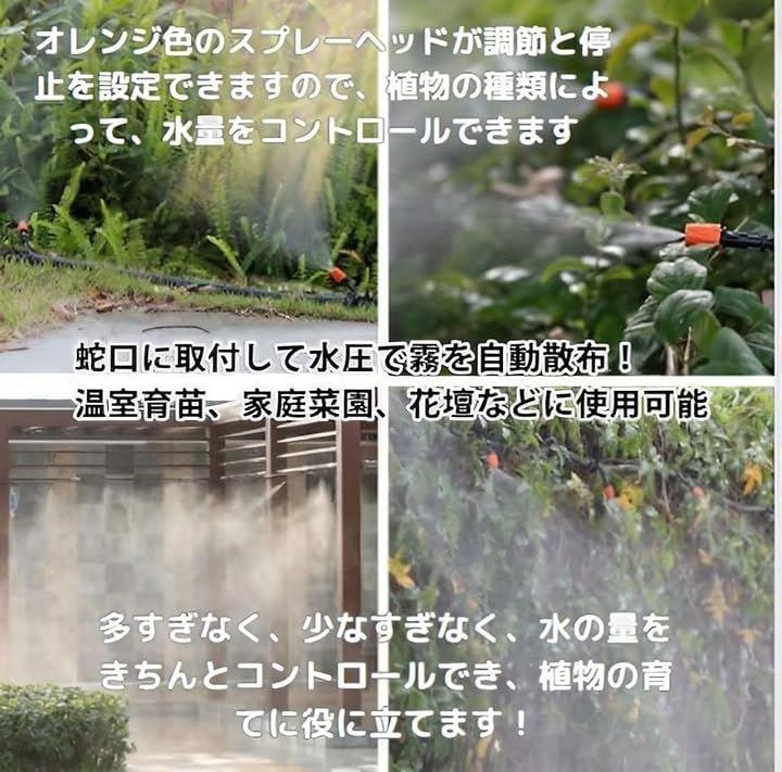 (2)オレンジ色のスプレーヘッドが調節と停止を設定できますので、ミストシャワーは植物の種類によって、水量をコントロールできます。