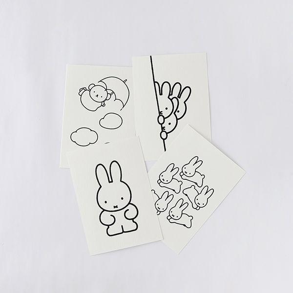 大人のためのミッフィーステーショナリーシリーズ。ディック・ブルーナのシンプルなイラストのポストカードです。手触りのある白厚紙に黒い箔押しを施しています☆