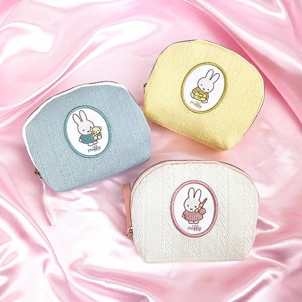 シャーリングニット×春カラーが可愛い『スプリングニットシリーズ』です♪ミッフィーのワッペンは刺繍仕様。表面に凹凸がありぽこぽことした手触りが特徴で、縄状の凸凹がある生地を選定しております。