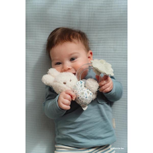 幸運をもたらすシンボルとして四つ葉のクローバーがデザインされたラッキーリーブスシリーズ。 ミッフィーがついたリングラトルは、動かしたり振ったりするとかわいい音が鳴ります。 透明なリングの中には色とりどりの小さなボールが入っていて、ラトルを動かすとカラカラと楽しい音がするベビーが好きな鉄板アイテムです。●手洗いできます。●製品の洗濯表示に従ってお手入れをしてください。●アルコール成分を含む除菌シート等で製品を拭かないでください。変色、変形するなど製品が劣化する可能性があります。【対象年齢:おたんじょうからから】