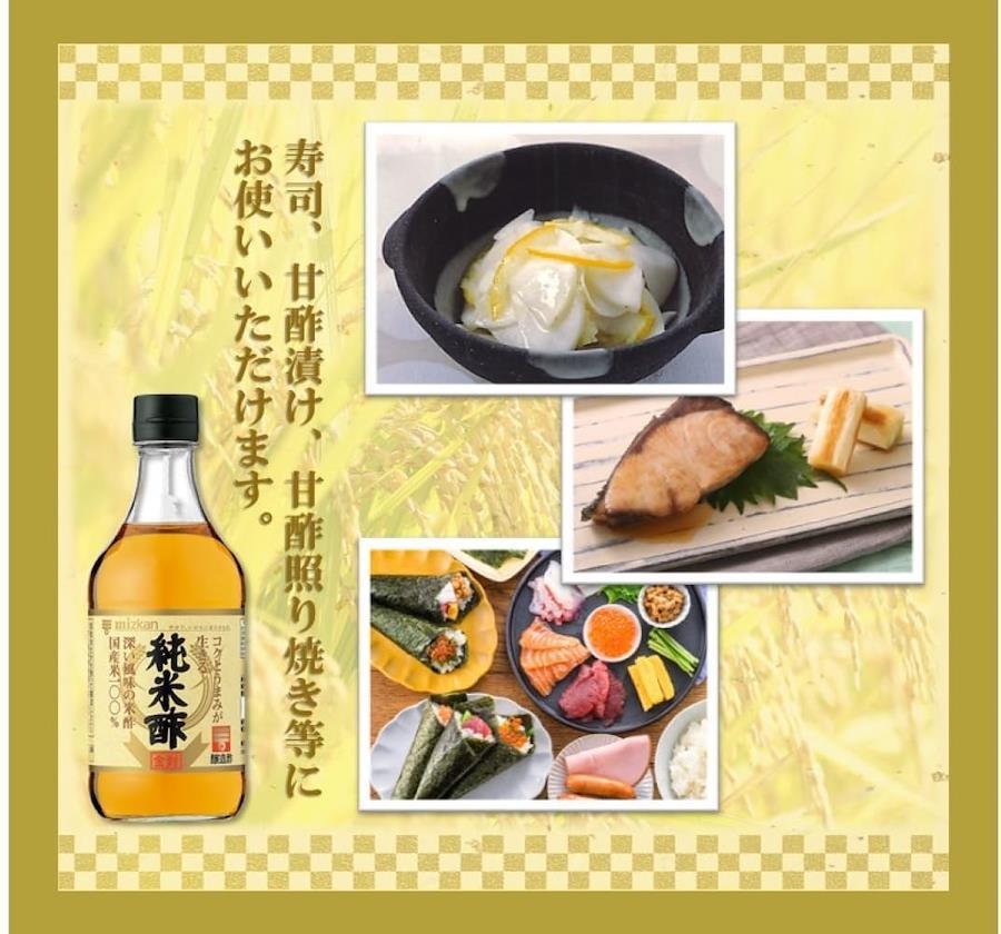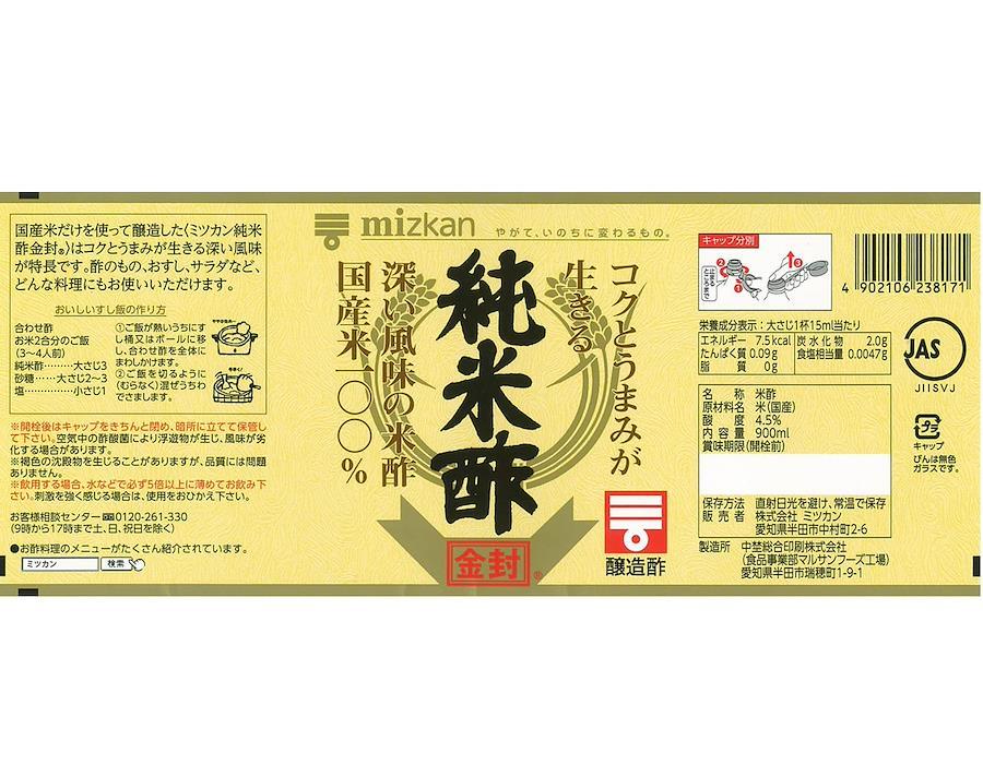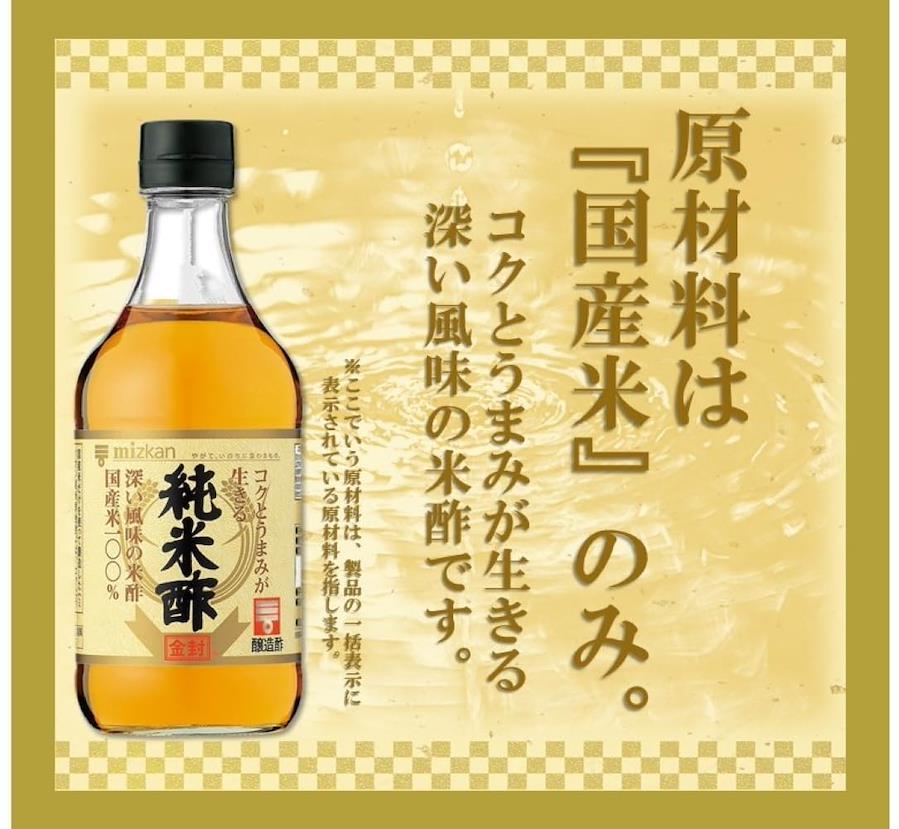 国産米だけを使って醸造したミツカン純米酢金封は、コクとうまみが生きる深い風味が特長です。