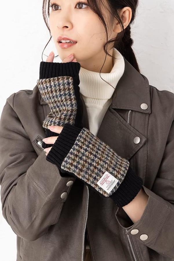 ケース入りなので自分用にはもちろん、贈り物にも喜ばれるハリスツイードのレディース用ミテーヌグローブです。