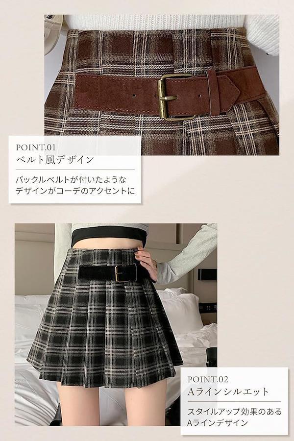 ポイント(1):太めのベルトデザインがアクセントになったチェック柄ミニプリーツスカート。韓国風スタイルやスクールガール風、ガーリーコーデやカジュアルコーデ等、幅広いスタイルで大活躍。