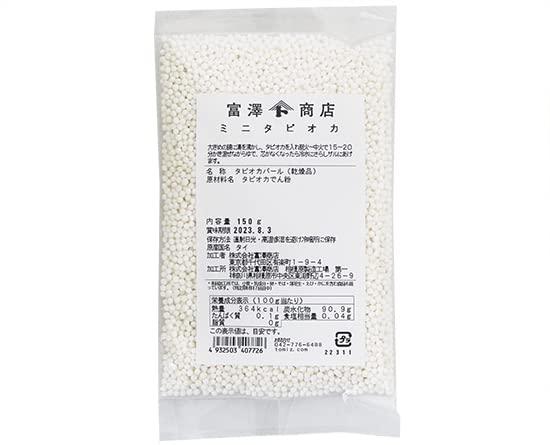 直径2mm 位の小さいタピオカです。 ■名称:タピオカパール(乾燥品) ■原材料名:タピオカでん粉 ■賞味期限(未開封時):1kg:製造より365日 150g:270日 ※製造日を起点とした期限です。■保存方法(未開封):直射日光、高温多湿を避け冷暗所に保存 ■コンタミネーション:* 本品加工所では、小麦・乳成分・卵・そば・落花生・えび・かにを含む食品も扱