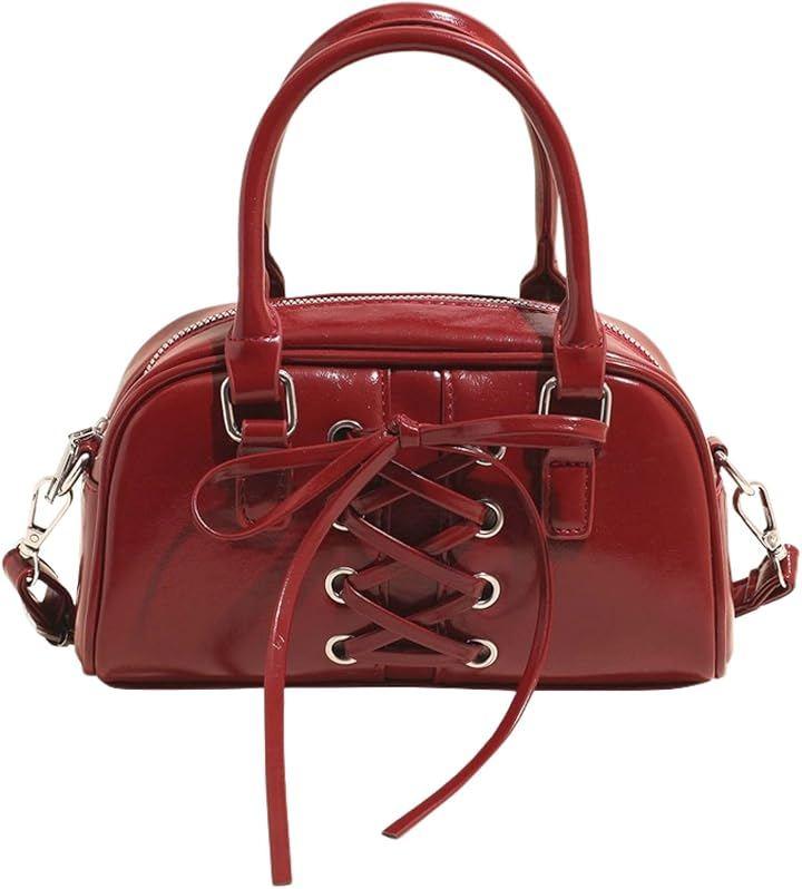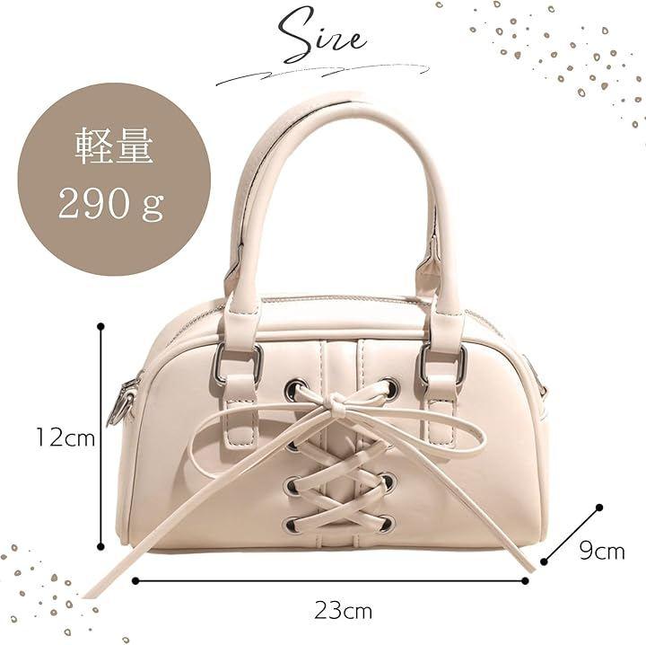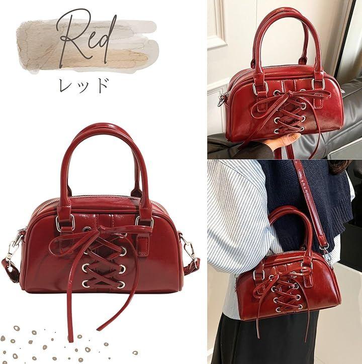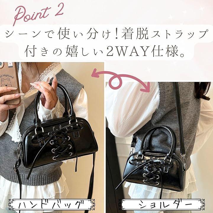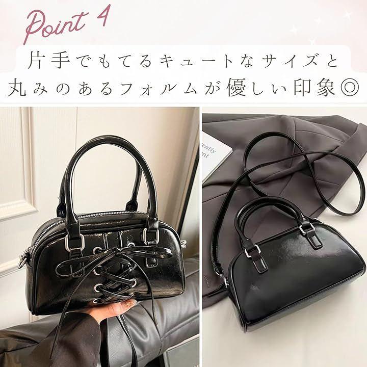 艶めく素材と編み上げリボンが一目で華やぐミニボストンバッグです。