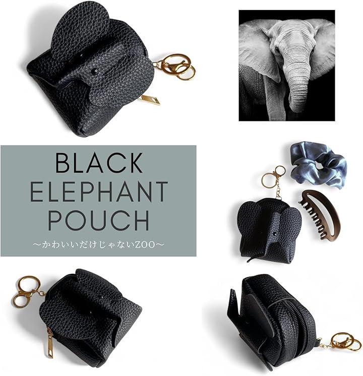 ユニークで愛らしいゾウ型デザインが目を惹く、カラビナ付きミニポーチ。