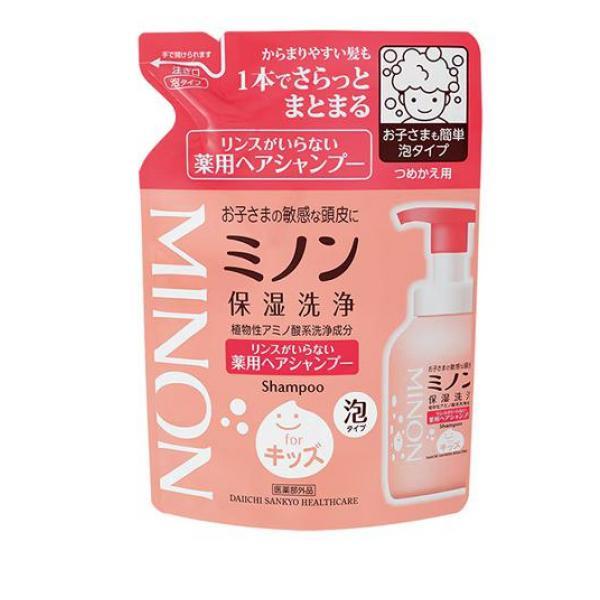 製品の特徴●MINON ミノン リンスがいらない薬用ヘアシャンプーforキッズ 泡タイプ●保湿洗浄料●1本でさらっとまとまるリンスがいらない薬用泡ヘアシャンプー。●植物性アミノ酸系洗浄成分配合。●泡ででてくるからお子さまも洗いやすい。●汗臭、かゆみ・フケを防止する有効成分を配合。●からまりやすい髪も一本でさらっとまとまる。●低刺激性・弱酸性・無香料。アレルギーの原因物質を極力カット。●赤ちゃんから使えます。●医薬部外品●販売名:DSシャンプーRW●こんな方におすすめ(お子さまの頭皮のニオイ・かゆみ・フケが気になる、お子さまの髪のからまりやまとまりが気になる、成長にあわせてキッズ用泡シャンプーを探している、肌質にあう低刺激性のヘアシャンプーを探している)